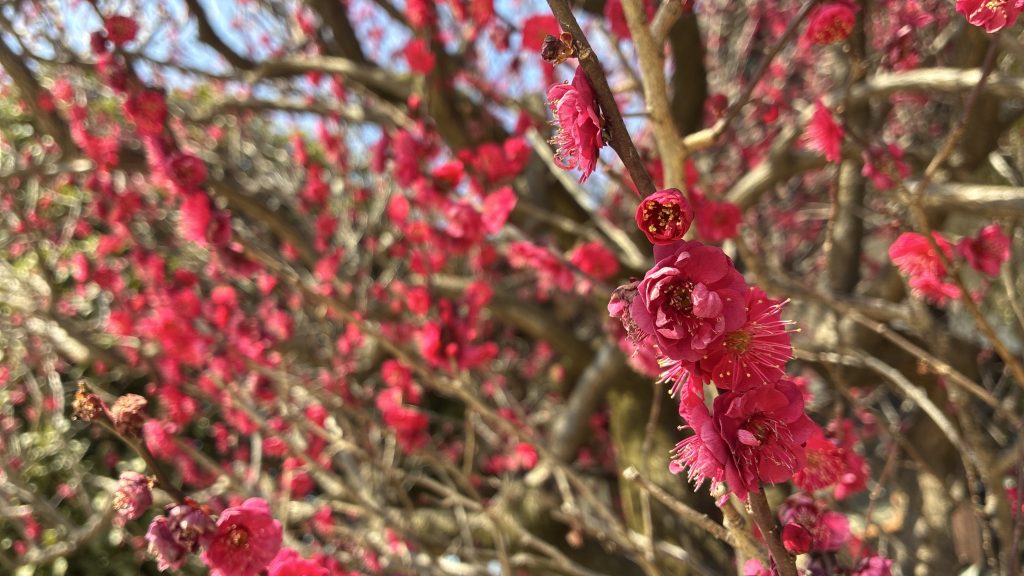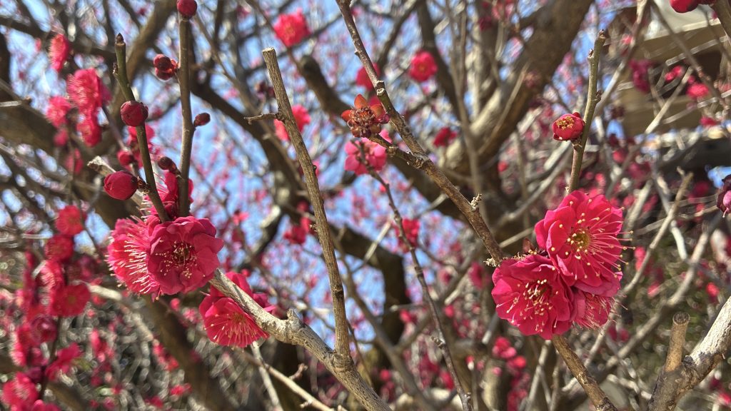 自然の摂理とは言うものの雪かきしかり、北国の人たちの御苦労を考える時、いかにこの地は恵まれている事か。紅梅の開花もしかり、早い遅いはあれども、この咲くことが当たり前と思える事の中に有り難さが潜んでいる。何事も平穏無事ほど有り難い事はないのだが、往々にして忘れがちで、心のどこかに不平不満を抱えているのも、与えられた有限の命にもかかわらず、今日も明日も来ることが当たり前と思い込み、大いなるものに生かされている事の有り難さを忘れているからに外ならない。