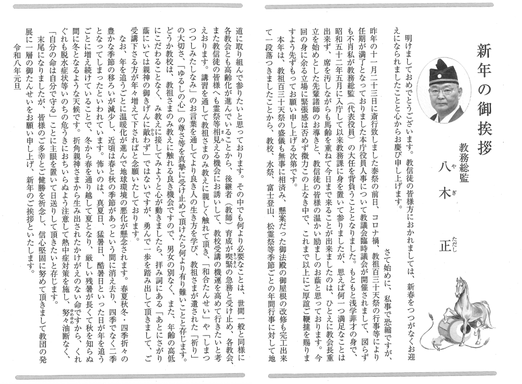 新年の御挨拶 教務総監 八木正